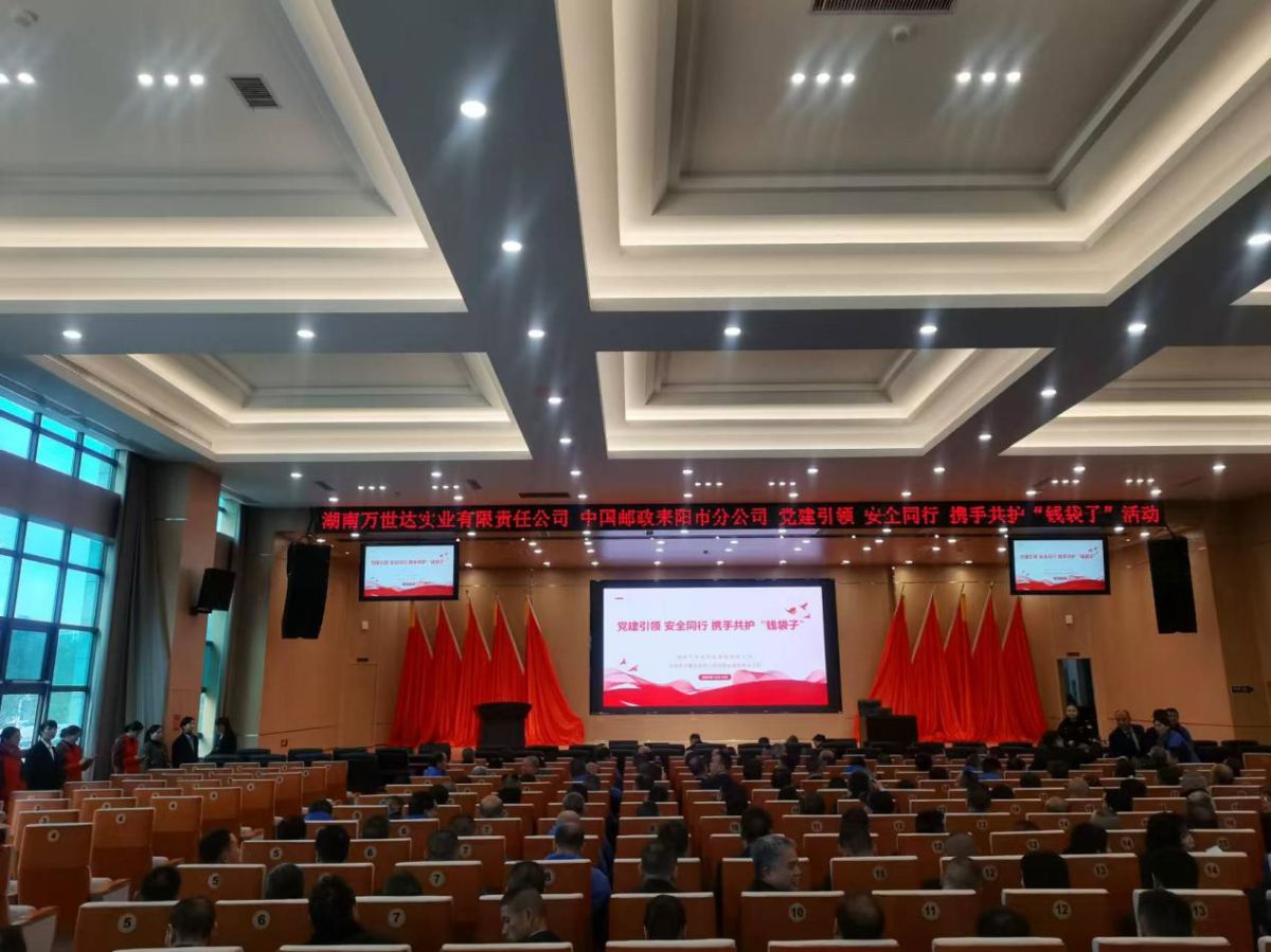 衡陽新聞網訊 通訊員龍懿帆 李無我 記者趙福中報道 12月19日,湖南萬世達實業有限責任公司(簡稱萬事達實業)與耒陽市郵政分公司(簡稱耒陽郵政)共同舉行“黨建引領 安全同行 攜手共護‘錢袋子’”活動,目的是加強雙方合作,共筑金融安全“防護墻”,讓企業職工免遭財產損失。