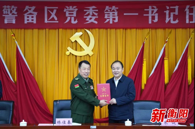 林佳春宣讀朱健任衡陽警備區黨委第一書記任職通知并頒發任職證書