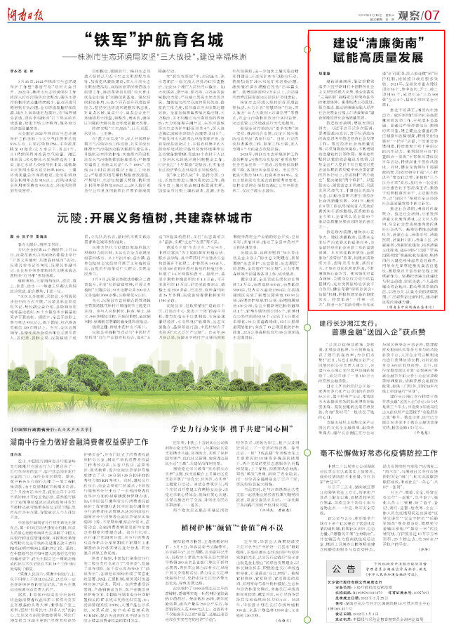 建設(shè)清廉湖南,是省委貫徹落實習(xí)近平新時代中國特色社會主義思想的重大決策,是全面落實“三高四新”戰(zhàn)略定位和使命任務(wù)的重要保障。衡南堅持主動謀劃、強(qiáng)力推進(jìn),推動清廉建設(shè)融入經(jīng)濟(jì)社會發(fā)展全過程,以“清廉衡南”建設(shè)賦能經(jīng)濟(jì)社會高質(zhì)量發(fā)展。