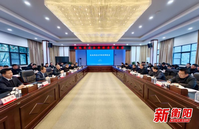 ▲校地深度合作聯席調度會現場。衡陽新聞網訊 記者王倩雯報道 1月21日上午,衡陽市和南華大學召開校地深度合作聯席調度會,共同譜寫校地