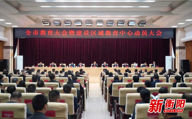 ▲會議現場。衡陽新聞網訊 記者王倩雯報道 12月16日上午,衡陽市教育大會暨建設區域教育中心動員大會召開,市委書記朱健出席并講話,強調