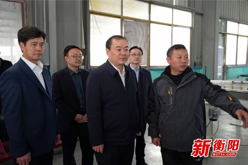 ▲ 朱健實(shí)地調(diào)研耒陽(yáng)市高新區(qū)企業(yè)。衡陽(yáng)新聞網(wǎng)訊 記者王倩雯報(bào)道 2月28日,衡陽(yáng)市委書記朱健赴耒陽(yáng)市調(diào)研經(jīng)濟(jì)社會(huì)高質(zhì)量發(fā)展情況,強(qiáng)調(diào)